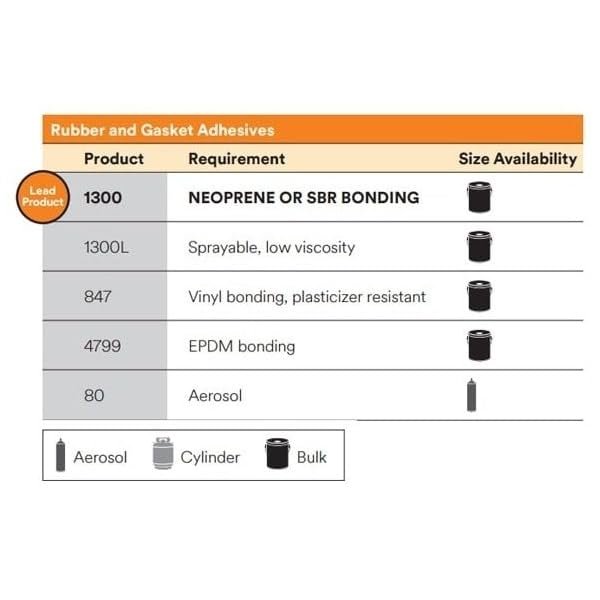 Perfect for bonding neoprene, nitrile rubber (BUNA), SBR, butyl, leather, vinyl, and various rubbers. With an open bonding range and quick drying time, it allows flexibility for adjustments during application. Ideal for industrial and harsh environmental applications, offering strong, flexible bonds.