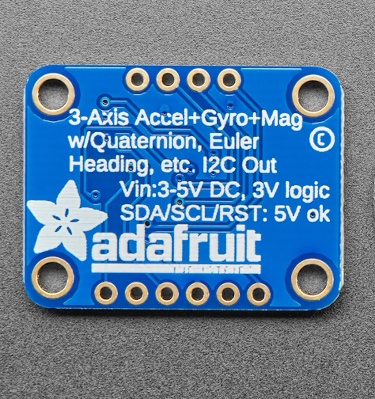 If you’ve ever dealt with a 9-DOF sensor, you know the challenge of turning accelerometer, gyroscope, and magnetometer data into 3D orientation! The BNO055 sensor fusion breaks down this barrier by providing stable three-axis orientation output, all on its own. Output includes: Absolute orientation, Angular velocity, Acceleration, Magnetic field strength, Linear acceleration, Gravity, and Temperature. Adafruit’s breakout design includes a 3.3V regulator, logic level shifting, crystal for performance, and more. Some soldering required for header attachment. Size: 20mm x 27mm x 4mm. Weight: 3g.