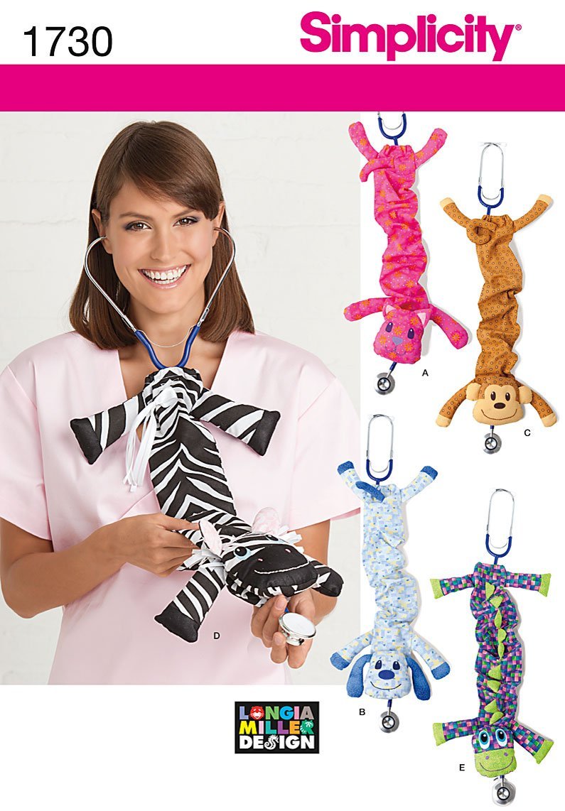 Five adorable animal stethoscope covers perfect for kids and veterinarians. Includes patterns for cat, dog, monkey, horse, and alligator. Craft with Simplicity!