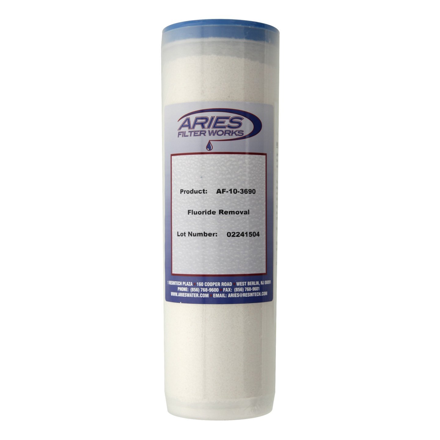 The Aries AF-10-3690 Fluoride Removal filter reduces fluoride, nitrates, tannins, arsenic, and perchlorate. It filters particles to the 25 micron level, providing healthier-tasting water.