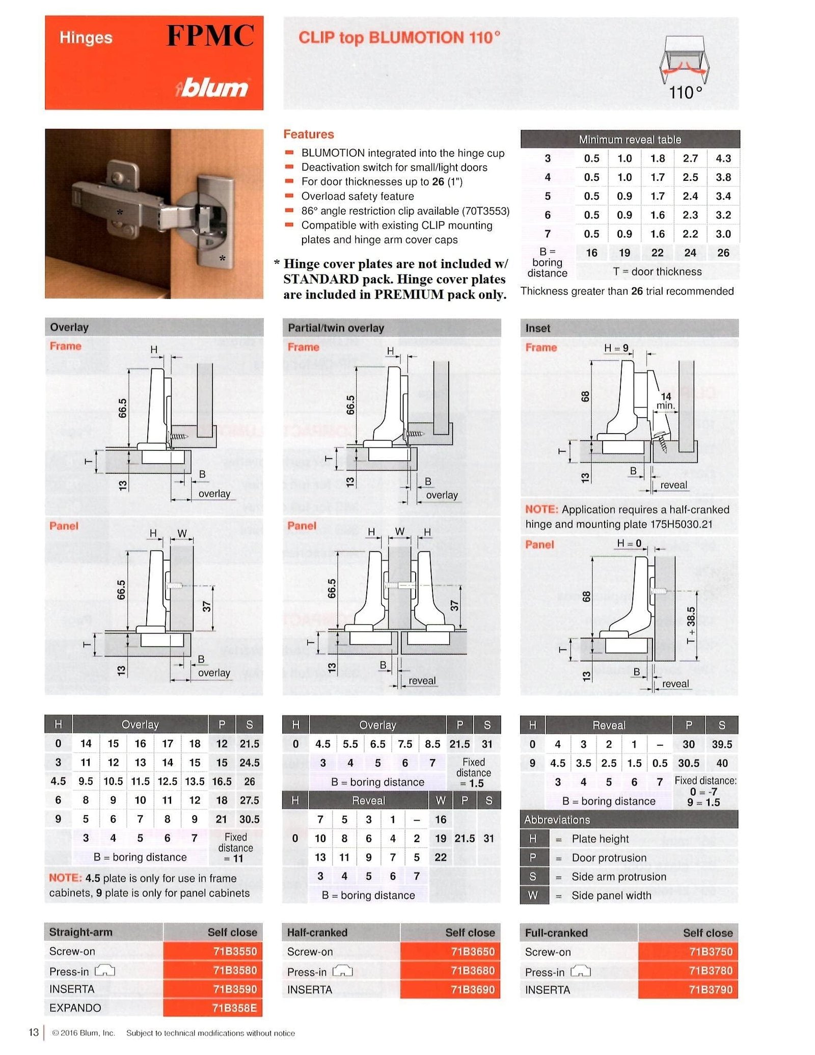 Blum CLIP top BLUMOTION Soft-Close Hinges provide a smooth closing action for your cabinet doors. This pack includes 4 hinges suitable for inset doors and comes with mounting plates and screws for easy installation.