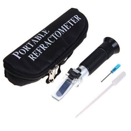 Sugar refractometer for measuring Brix Levels (Sugar Levels) and Specific Gravity. ATC for automatic temperature compensation. Comes with carrying case, adjustment screwdriver, and sample pipette. Useful for measuring sugar content and ripeness of fruit juice like grapes. Easily calibrates with distilled water. A must-have for grape growers.
