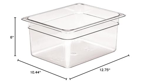 This Cambro Camwear food pan is ideal for storing, transporting, and serving food. Made of virtually unbreakable Camwear polycarbonate that will not crack, bend, or dent. Withstands temperatures from -40 to 210°F. Precisely designed to Gastro norm GN specifications. The non-stick smooth interior surface increases yields and promotes easy cleaning. The uniform 1/2-inch flange ensures the right fit in prep tables and food bars. These food pans stack neatly without wedging or sticking. Comes in a 9.4-quart capacity and 1/2 size. NSF listed. Available in clear color. Measures 12-3/4 inches in length, 10-7/16 inches in width, and 6 inches in depth.
