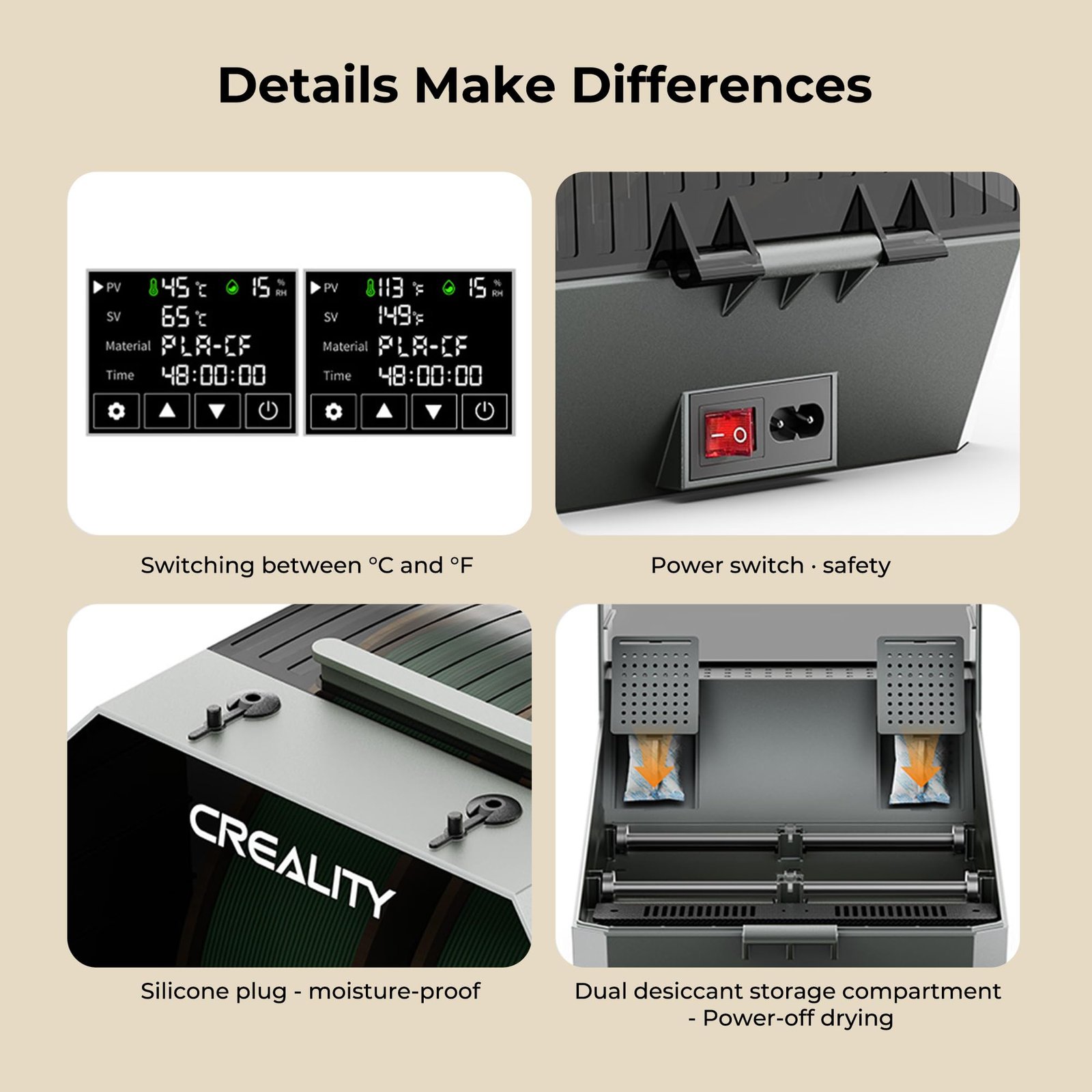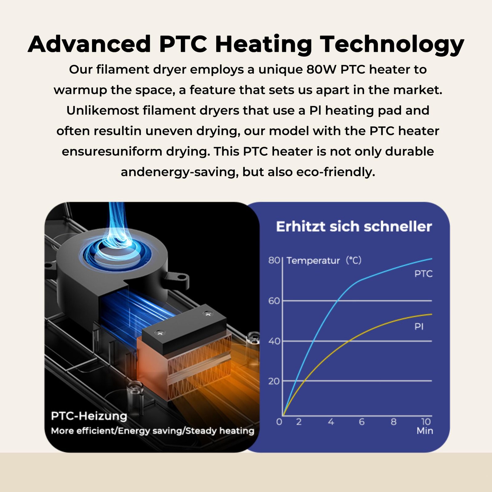 - High-Capacity Design: Dry two 1KG spools simultaneously for efficient printing.