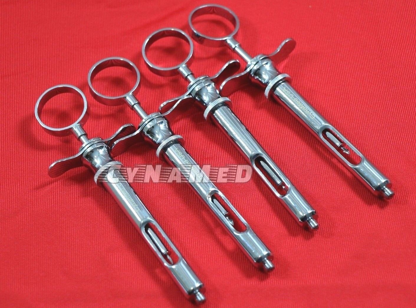 4 premium dental anesthetic syringe self-aspirating 1.8cc-Dental Instruments by Cynamed. Made of German stainless steel, autoclave and sterilizeable. Tempered for durability and reliability. Handcrafted for precise dimensions, ergonomic design.