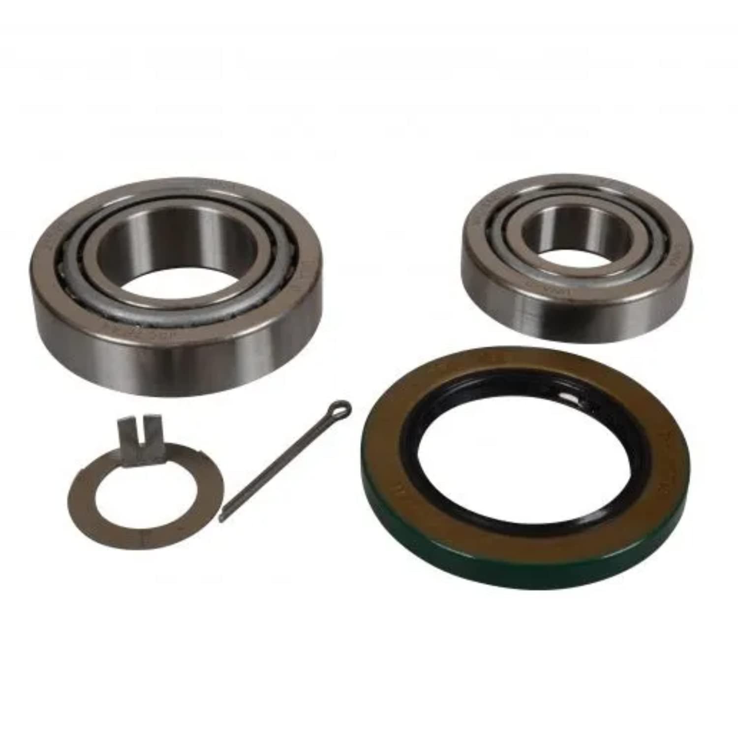 Our trailer bearing kits include all necessary components for standard spring and torsion axles. Each kit contains inner and outer bearings, races, seals, dust caps, washers, cotter pins, and lug nuts.