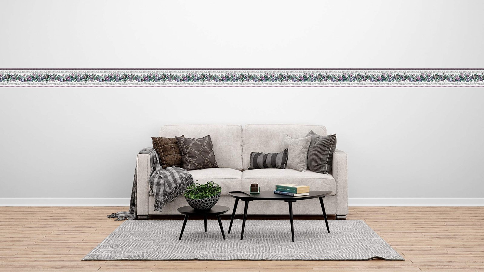 Swatch before you stick. Hold the border against the wall with a few paint swatches to check for harmony. Choose a border pattern where the main color is 3 shades lighter or darker in the same color family as your wall. Measure the full length of wall space you want to cover before purchasing to avoid mismatches. Prep and dry the surface for good adhesive application. Always get a little extra to avoid running short later. Top up adhesive if needed for extra hold without damage to your walls.