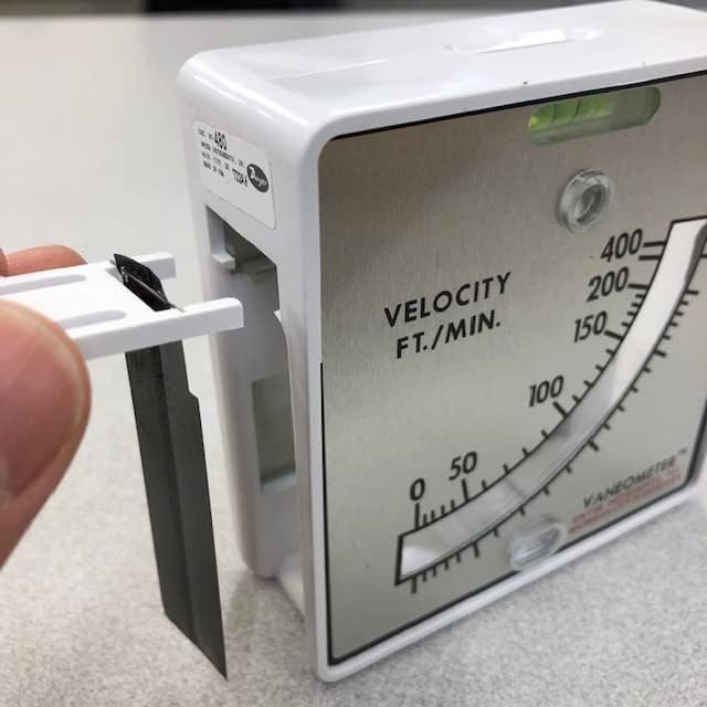 The Dwyer Vaneometer M480 Anemometer measures air velocity from 25 to 400 fpm with a built-in spirit level vial for accuracy. Ideal for monitoring ventilation in spray booths and exhaust hoods. Portable with ABS housing for impact resistance. Includes mounting bracket for continuous monitoring. SPECIFICATIONS: Air velocity range 25 to 400 fpm, Air velocity accuracy + or – 5% of full scale (to 100 fpm); + or – 10% of full scale (over 100 fpm), Dimensions 98.43 x 96.82 x 40.08 mm, Weight 4 oz. IN THE BOX: Dwyer M480 Anemometer, Mounting bracket, Spare vane indicator, Instruction sheet.