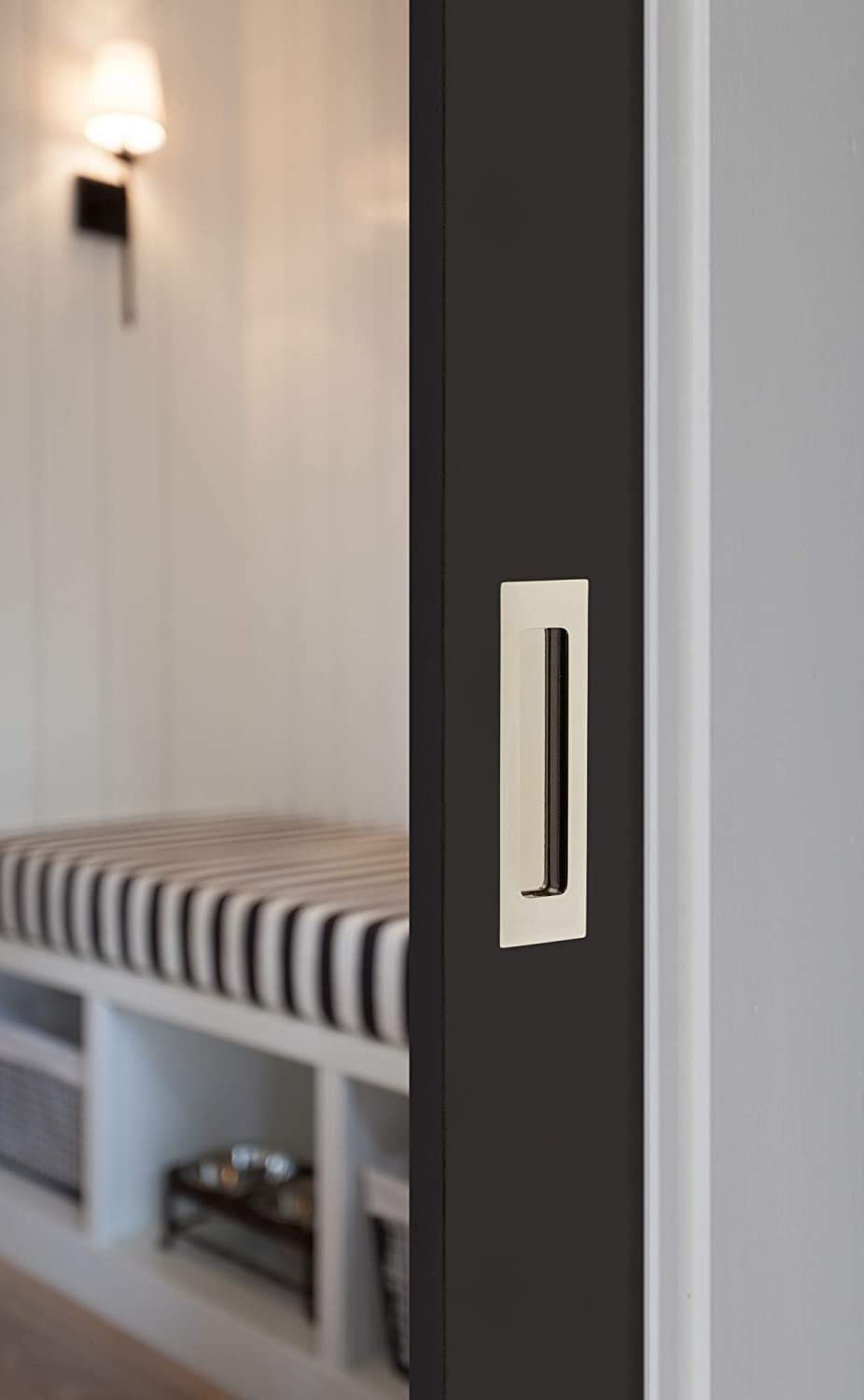 Modern Rectangular Brass Flush Pull, 4 inches in length, designed for a contemporary look.