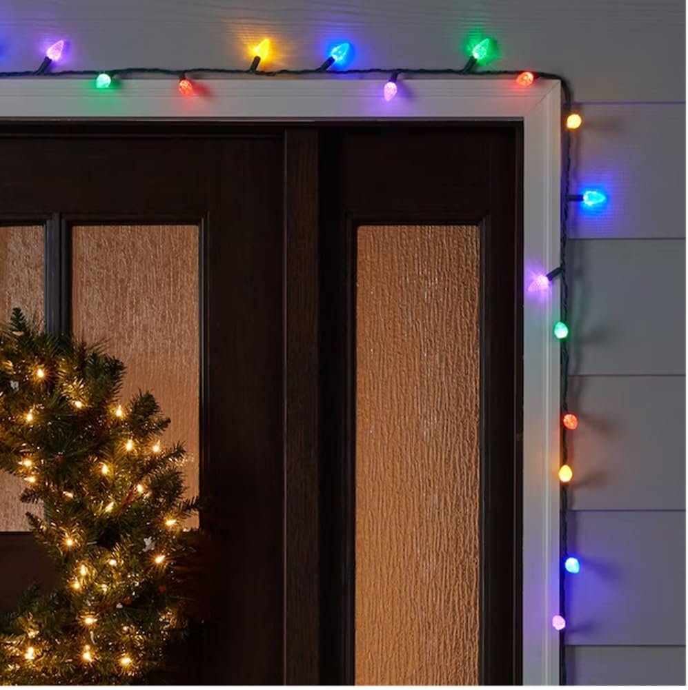 GE Energy Smart 150 LED C-6 string lights are designed for both indoor and outdoor use. With a total of 150 multicolor LED lights, these lights provide a vibrant display for any occasion. The lights have a lighted length of 49.6 feet with a green cord and fused plug for easy installation. Replacement bulbs and fuses are included for added convenience, ensuring continuous operation even if a bulb is burned out or loose. Brighten up your space with these energy-efficient and durable LED string lights.