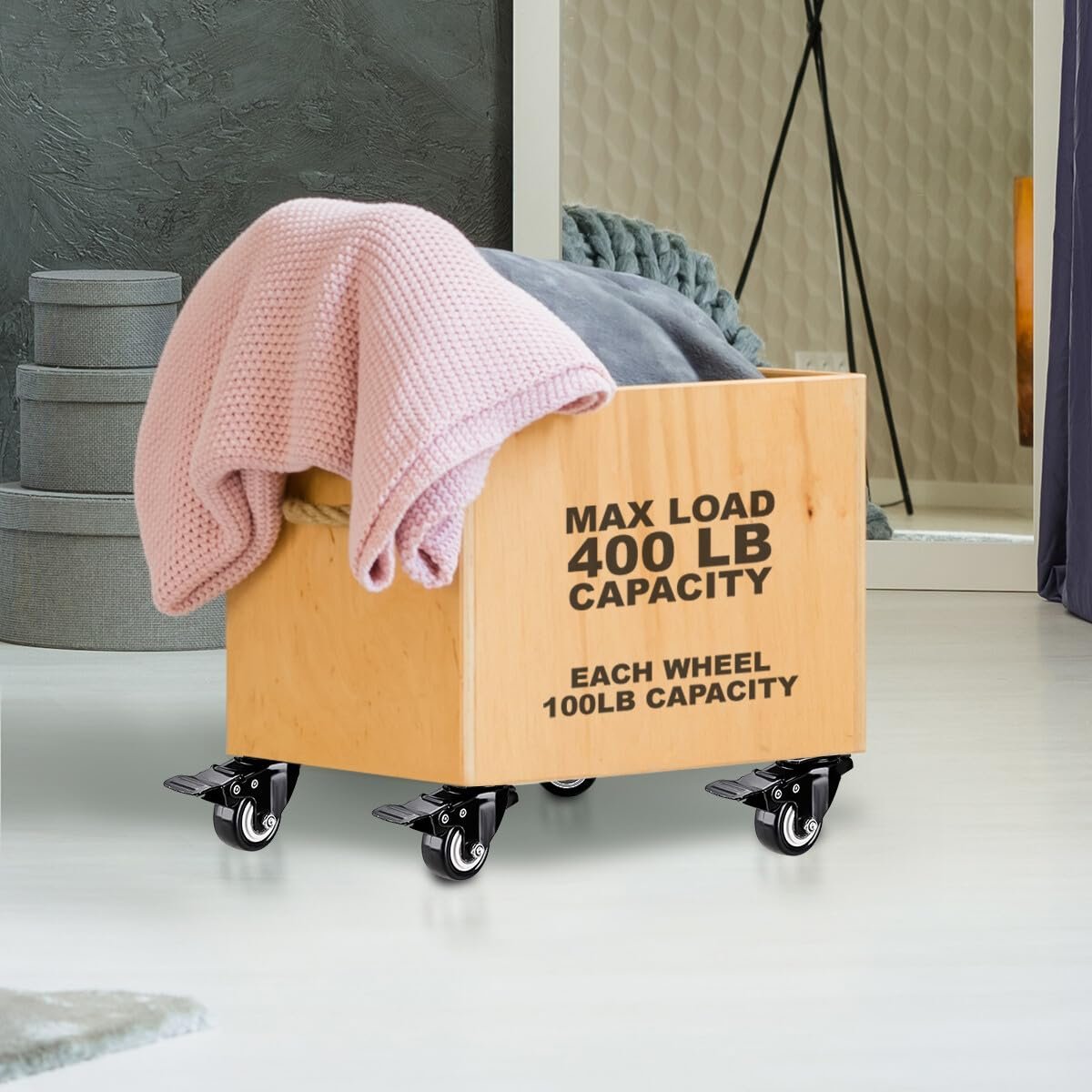 - Double Ball Bearing: Smooth movement and capable of carrying over 100lbs per caster.