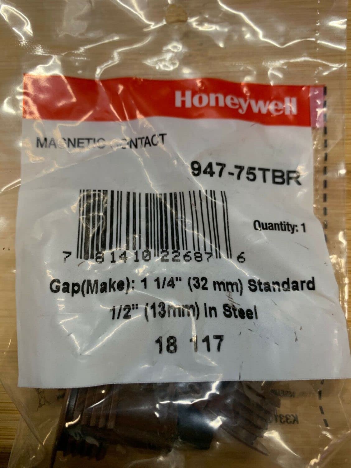 Honeywell 947-75TBR Recessed Steel Door Contacts with Screw Terminals, designed for steel doors with a 3/4″ diameter recessed contact. The staggered ‘T’ terminal contacts ensure easy wiring and compatibility with standard screwdrivers. Contact features a 1/2″ standard gap for secure installation.