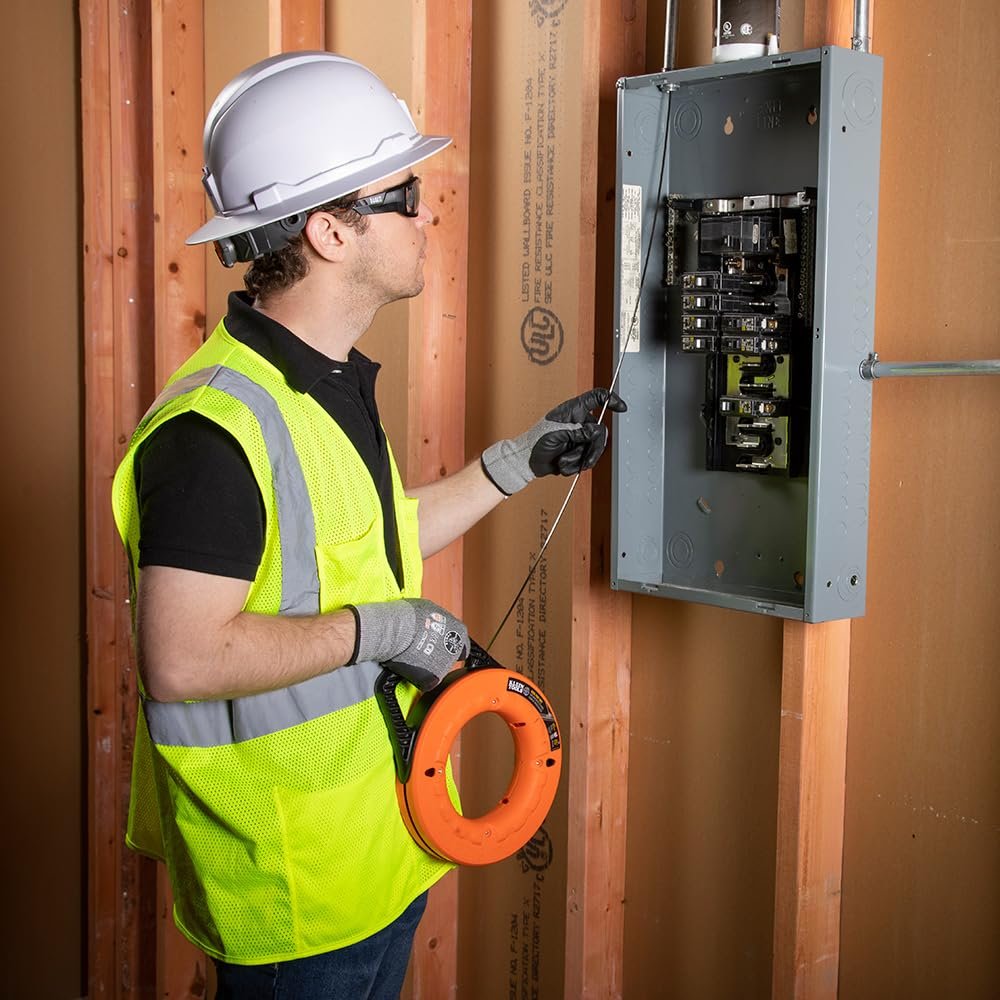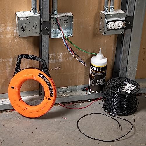 Electrical Fish Tape, 65-Foot Long x 1/8-Inch Wide Steel for Heavy Duty Wire Pulls, Laser Etched for Conduit Measuring