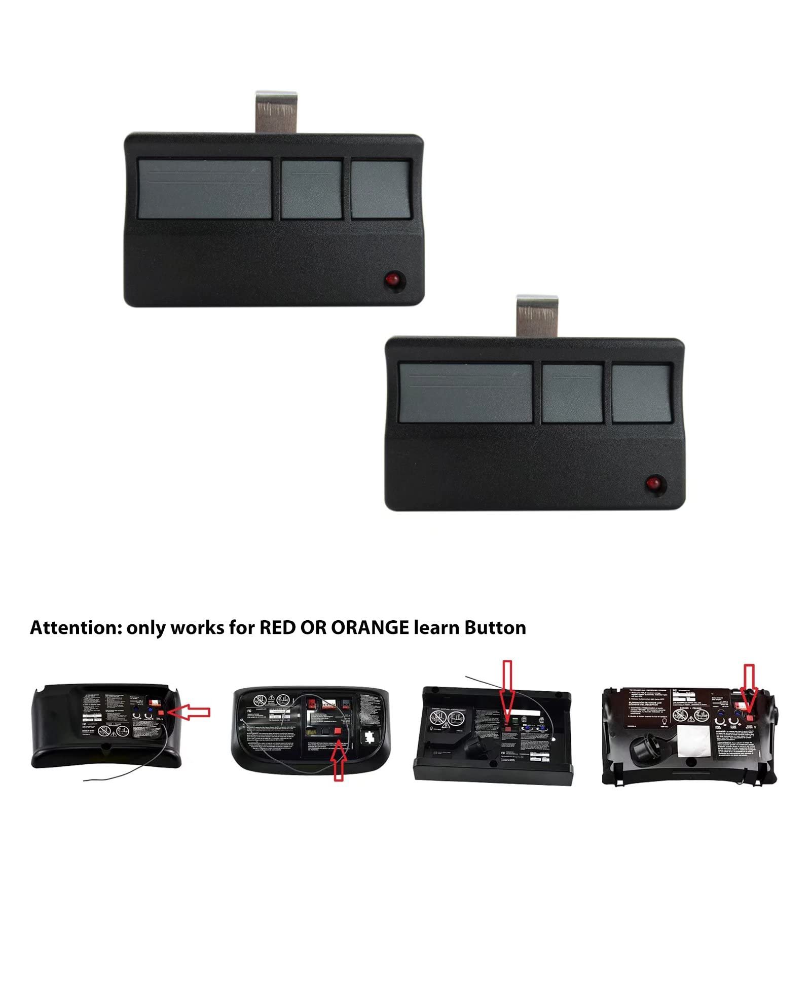 2. Security+ 390MHz (Red or orange learn button openers 1997-2005) remotes model below: