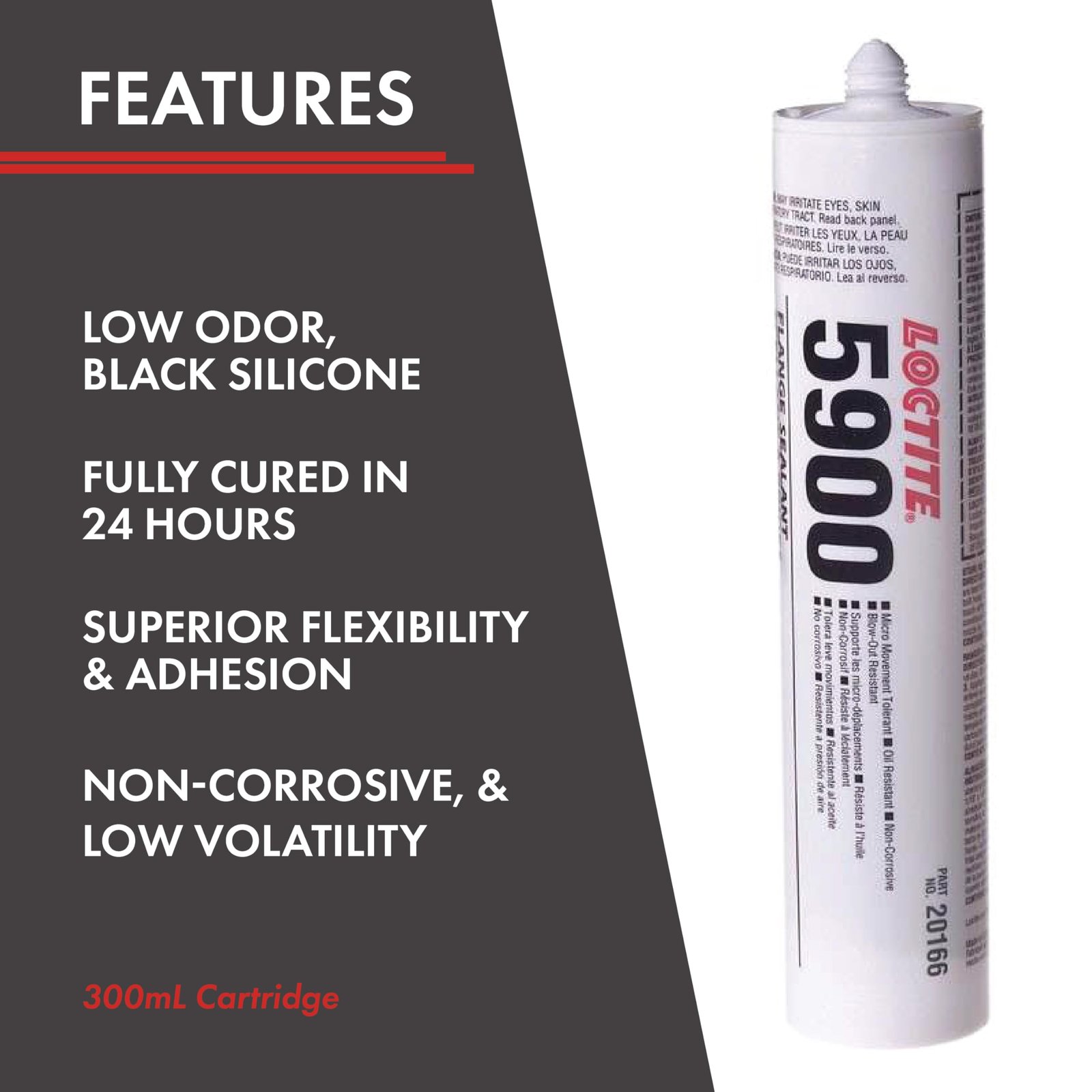 LOCTITE® SI 5900 is a low strength, moisture-cured, thixotropic silicone-based paste. Ideal for stamped metal covers like timing covers and oil sumps. Features a 15 min rapid skin-over time, suitable for gaps up to 1 mm. Requires no mixing as a single component.