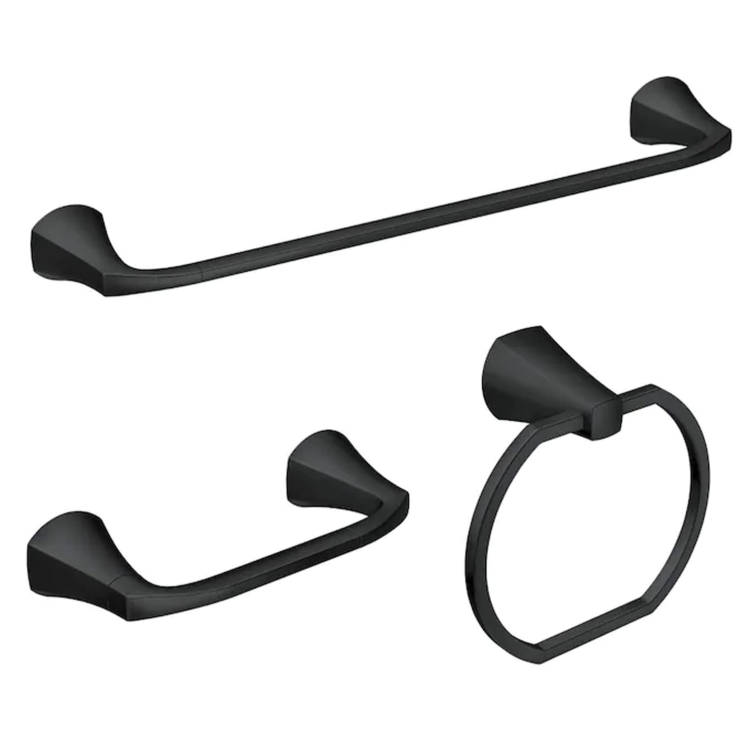Moen Lindor Matte Black Bathroom Set: 18″ Towel Bar, Towel Ring & Toilet Paper Holder Set