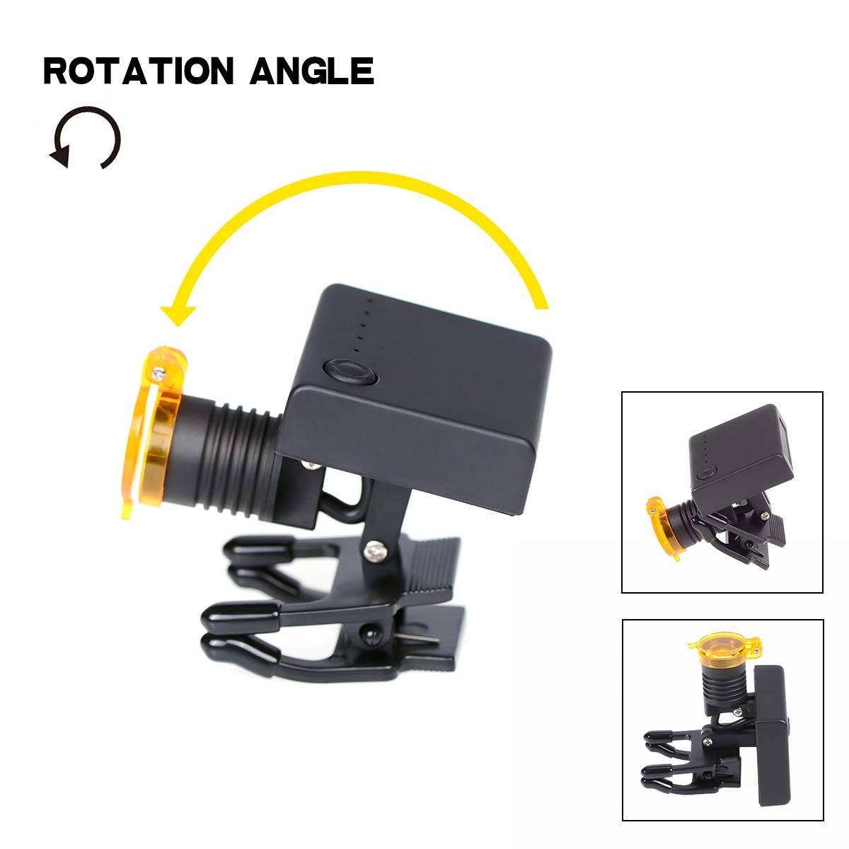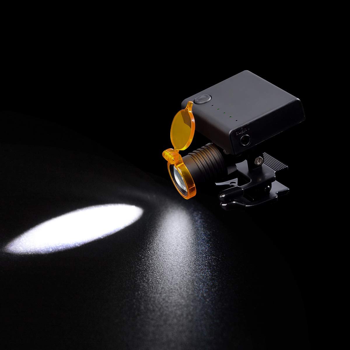 Attention: Glasses not included. The headlight features a rechargeable lithium battery for lightweight, long-lasting, and comfortable use suitable for all operations. Specifications: LED: 3W, Life span: 100,000h, Intensity: 15000-30000 lux, Working time: 1.5 hours at max power, Charge time: 2 hours, Light Spot: Square, Spot size: 25cm at distance & 7cm, Color Temperature: 4000K~5700~6300K, Light Size: 16X18mm (without holder), Cycle life: Over 700 cycles, Battery Capacity: 3.7V 600mAh, Power level: 4 LEDs at 100%, 75%, 50%, 25%, Control brightness push-button: 25%, 50%, 75%, 100%, off. Package List: – 1 x Light Source, – 1 x Charger