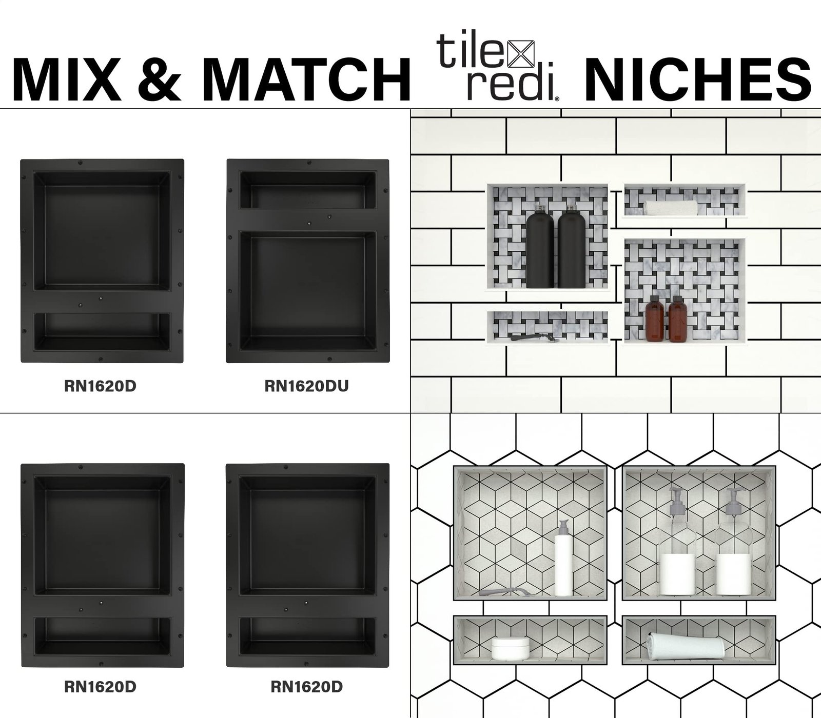 Get creative with Redi Niche! Whether in the bathroom, kitchen, spa, or any room, these shelves streamline your storage needs. Customizable and available in various models, they fit any space and design requirements.
