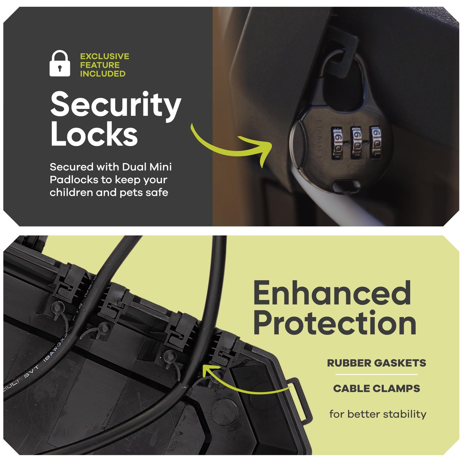 - Secure Features: Two padlocks for added security.